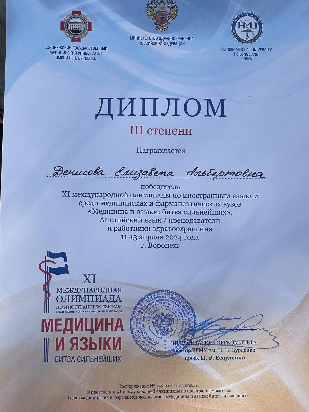 11 и 12 апреля в Воронежском ГМУ им. Н.Н. Бурденко состоялся финал XI международной олимпиады по иностранным языкам среди медицинских и фармацевтических вузов "Медицина и языки: битва сильнейших".