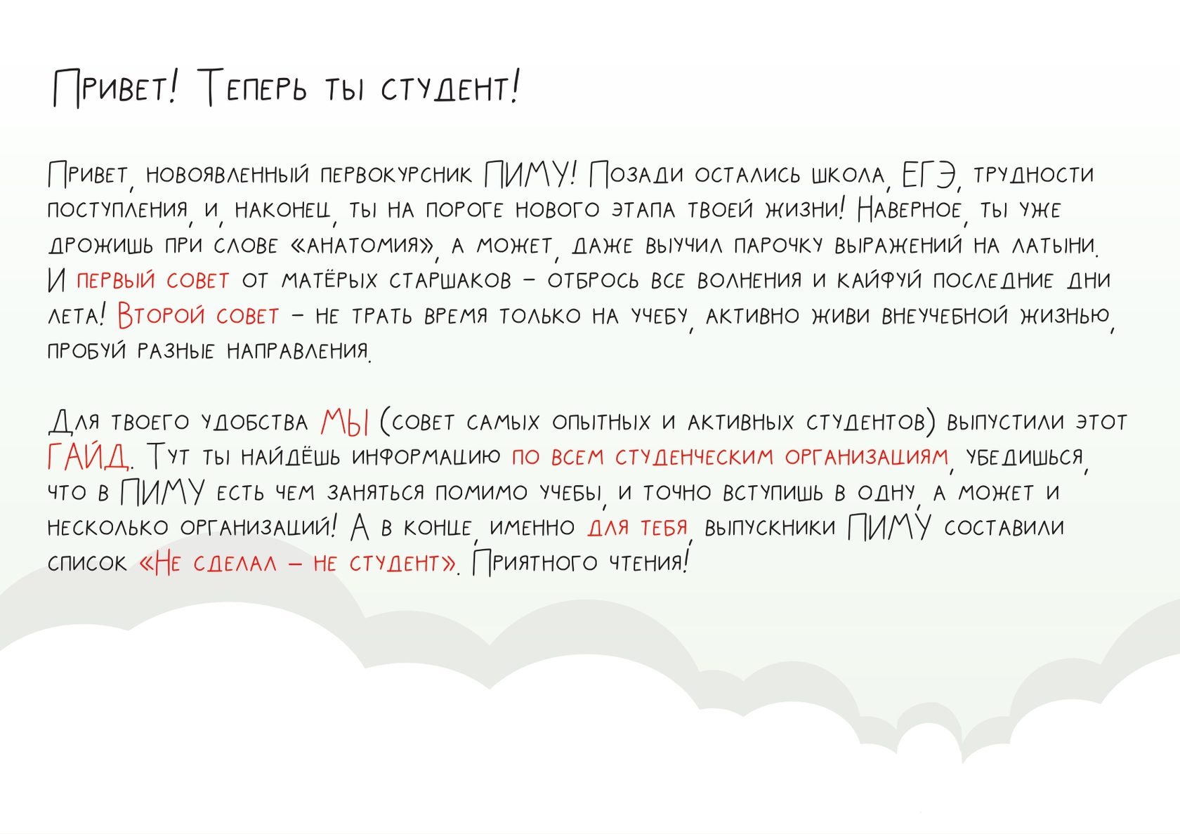 Члены студенческого актива ПИМУ собрали для первокурсников самую важную информацию по внеучебной деятельности в одном гайде.