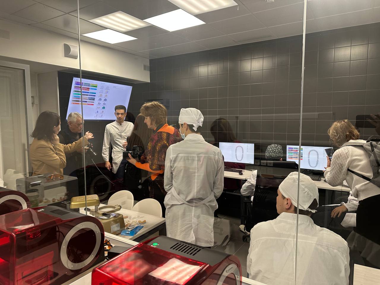 Представителям СМИ провели экскурсию по учебному корпусу на ул. Алексеевской, д. 8/1, представив учебные лаборатории: Цифровую лабораторию «IT-медик» и ее разработку web-приложение “Медицинский атлас”, симуляционный стоматологический центр и лабораторию на базе кафедры микробиологии, эпидемиологии и доказательной медицины. Журналистам удалось пообщаться не только с руководством вуза - ректором Николаем Карякиным, проректором по учебной работе Еленой Богомоловой и деканом факультета сетевых образовательных программ Любовью Ловцовой, но и узбекскими студентами и ординаторами.