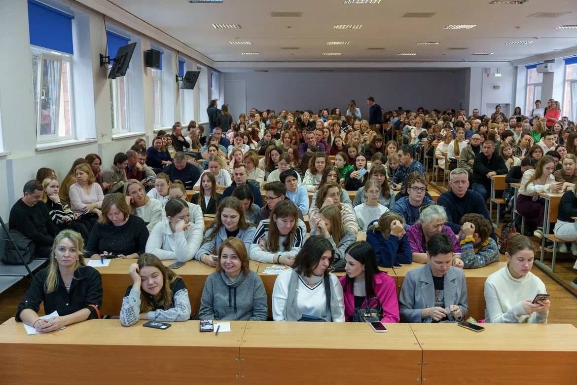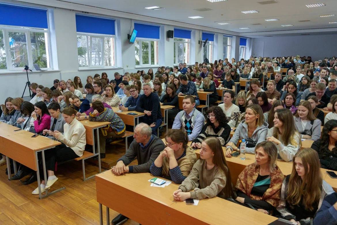 Несмотря на наплыв гостей, всех участников удалось разместить в большом лекционном зале, где с приветственным словом выступил ректор ПИМУ Николай Карякин. Он рассказал об истории и преимуществах университета, ключевых направлениях подготовки, обширной сети клинических баз и уникальных возможностях для научной работы с первых курсов.