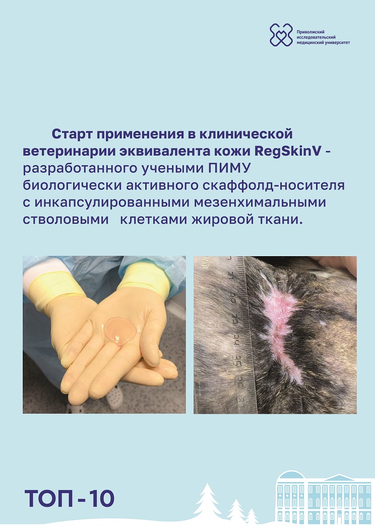 Старт применения в клинической ветеринарии эквивалента кожи RegSkinV - разработанного учеными ПИМУ биологически активного скаффолд-носителя с инкапсулированными мезенхимальными стволовыми клетками жировой ткани. - Изобретение для спасения жизней.