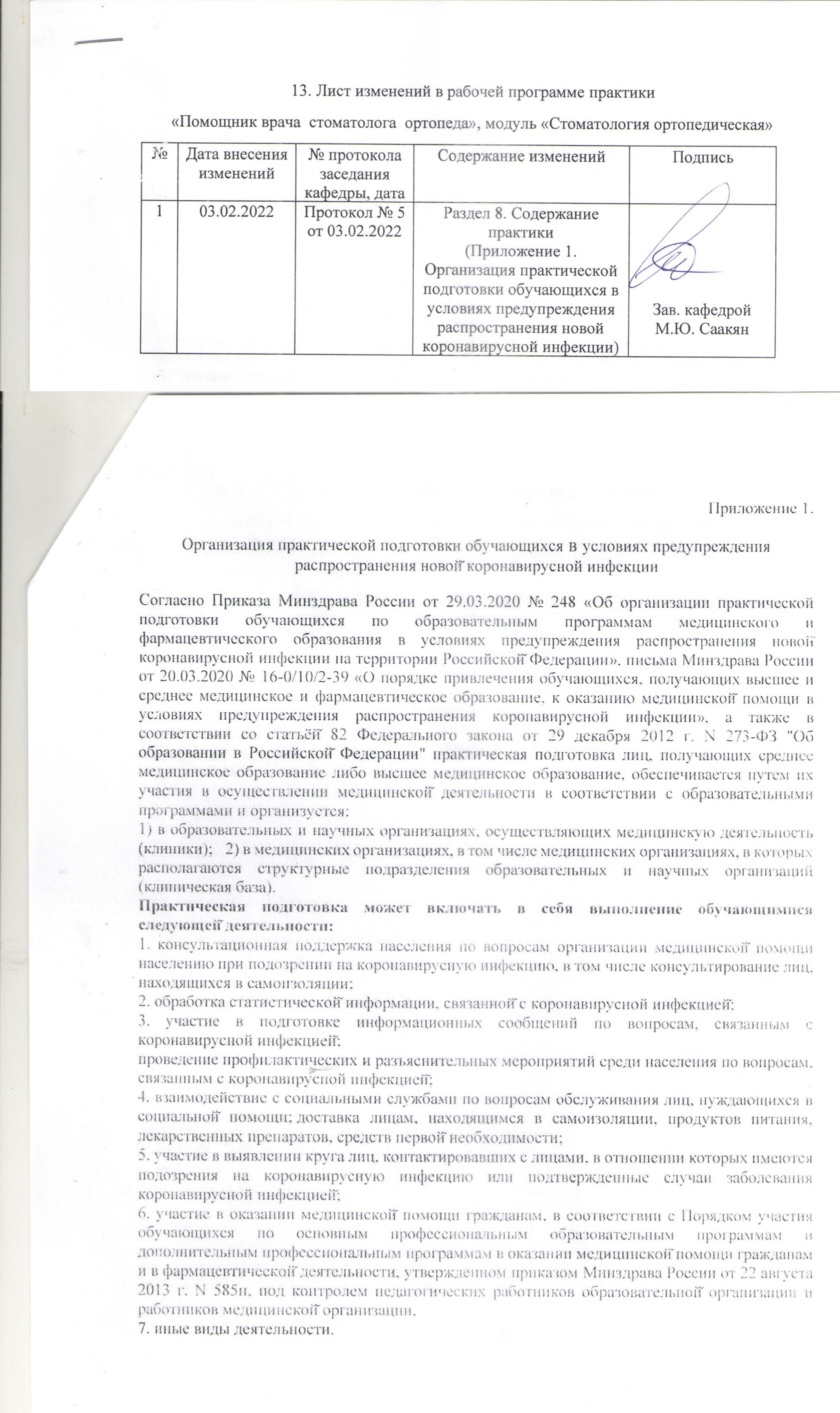 - Лист изменений в РП практики 5 курс-каф фак терапии Помощник врача поликлиники