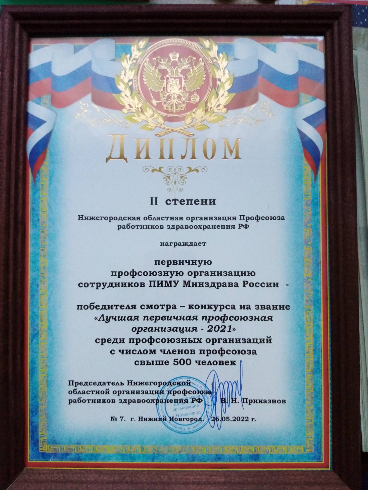 По результатам областного смотра-конкурса на звание "Лучшая первичная профсоюзная организация-2021" наша организация награждена дипломом.