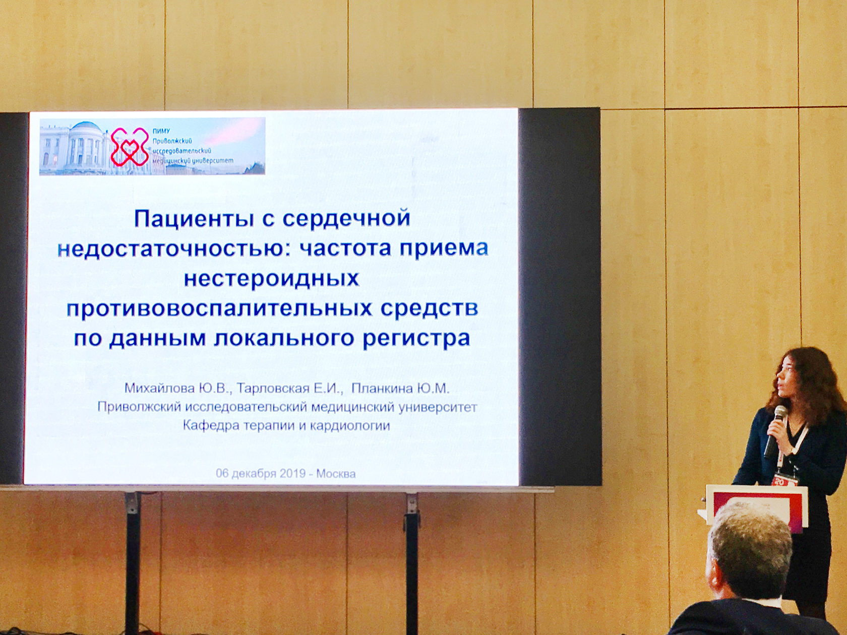 Ординатор кафедры терапии и кардиологии ПИМУ Юлия Михайлова выступила с докладом по итогам своей научной работы (руководитель профессор Е.И. Тарловская) на тему "Пациенты с сердечной недостаточностью: частота приема нестероидных противовоспалительных средств по данным локального регистра".