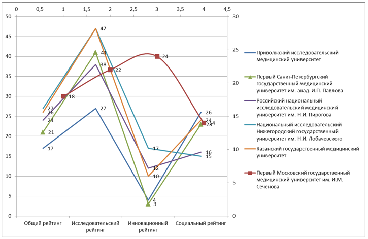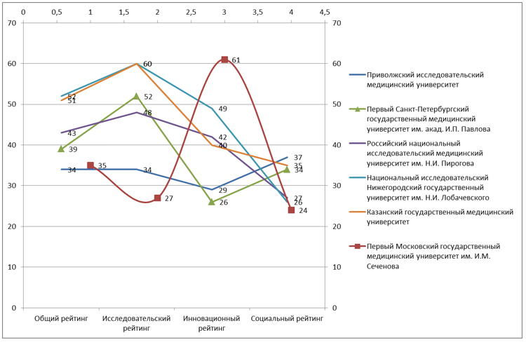 Среди 155 сильнейших университетов России – 17, опережая Первый Московский государственный медицинский университет им. И.М. Сеченова (18 место), Первый Санкт-Петербургский государственный медицинский университет им. акад. И.П. Павлова (21 место), Российский национальный исследовательский медицинский университет им. Н.И. Пирогова (24 место).